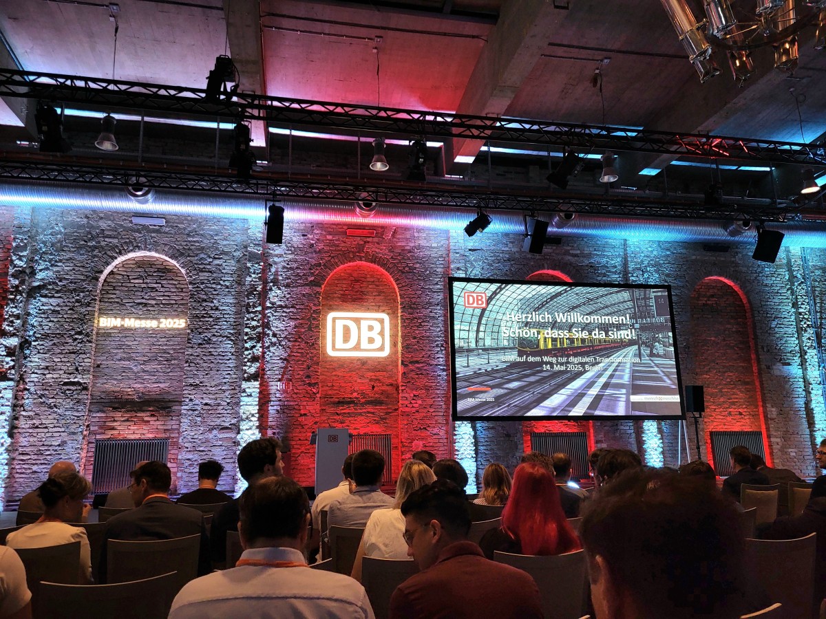 Am 14.05.2025 fand die DB BIM-Messe unter dem Motto „BIM auf dem Weg zur digitalen Transformation“ in Berlin statt. Dieses Jahr haben wir uns als reguläre Teilnehmer auf der Messe bewegt. Dadurch haben wir, neben den Besuchen von Austellern und Konzerngesellschaften, die Möglichkeit des Netzwerkens und Teilnahme an Fachvorträgen genutzt. Fachlich stachen für uns besonders die Themen digitale Entwicklung, Herausforderungen und Potenziale im Konzern (Datensilos), Digitalkompetenzen, Menschen und KI, Digital Twins und Zusammenführung von BIM und GIS hervor und haben uns auch in unseren Gesprächen stetig begleitet.
